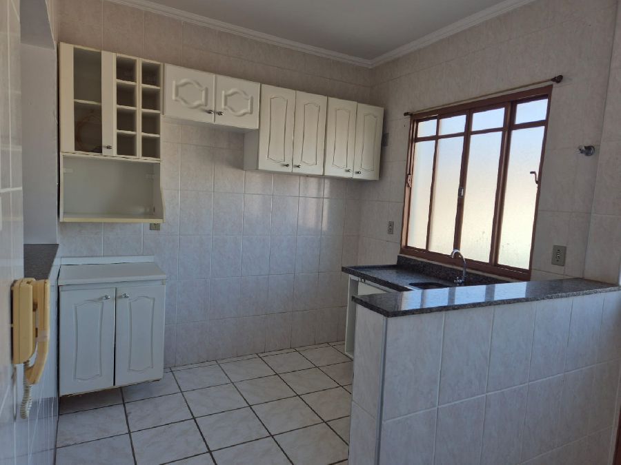 Apartamento com dois dormitórios, um banheiro, sala, cozinha com armários embutidos, garagem, lavanderia, elevador.